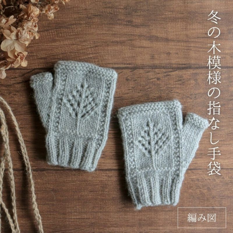 【K-003】Kayo 冬の木模様の指なし手袋 レシピ