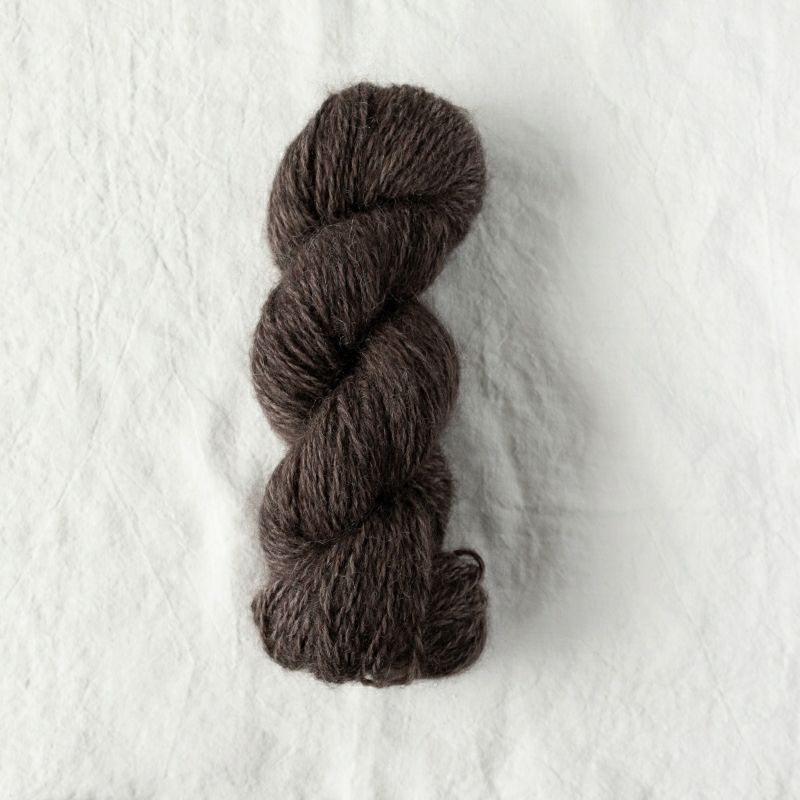 押さえの部分は強度と伸度を持たせるためナイロンを使用し、表面の糸はキッドモヘア100%を使用しています。