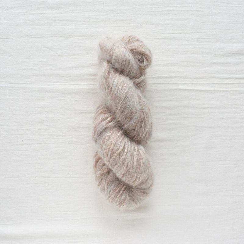 1本のウールと2本のモヘアを撚り合わせたふわふわと柔らかい贅沢な糸で、
